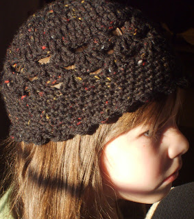 I altered the pattern I found by doing 7 rows of dc, and the thumb hole was ch 4, sk 4. the original pattern called for alternating hd and bobble stitches. I just didn’t much care for the look of the bobbles on the glove.had plenty of yarn left, so I made a skull cap w/a shell design. turned out pretty cute…