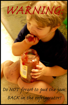 I, on the other hand, would have engaged in the following tactic: have a hissy fit that is way too loud and then blame anyone in sight for leaving the sticky jam out and then shout some more until the whole thing ends with both parties in tears.