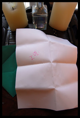 this morning, after I dropped her off at school, I got home and glanced over to the sideboard and found this: