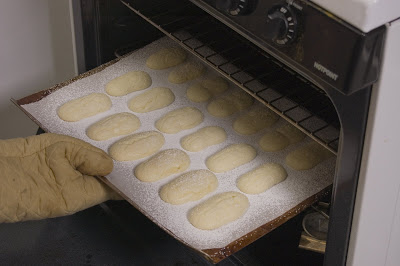 Bake for 8 to 10 minutes or until the ladyfingers are firm but barely browned and are still spongy when pressed with your finger.