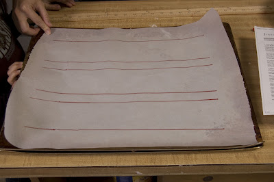 To make the piping of the cookies easier, use a marker and ruler to divide the parchment paper into three – 3 inch rows, with about 1 inch between rows. like so…