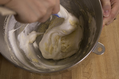 Fold the whites into the egg yolk and flour mixture in three additions, mixing only until incorporated.