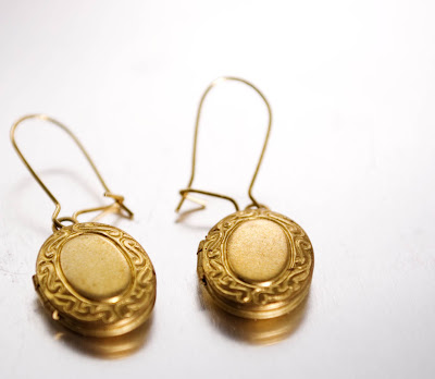 I found the miniature vintage brass lockets on etsy and made them into earrings and necklaces.
