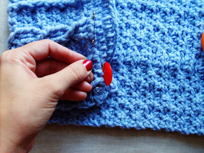 Pay careful attention NOT to remove the saftey pins until AFTER you’ve finished sewing on the buttons and you’ve already tied off the thread.